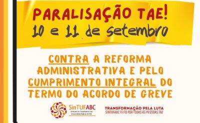 Paralisação dos TAEs, dias 10 e 11 de setembro! Contra a Reforma Administrativa e Pelo Cumprimento do Acordo de Greve