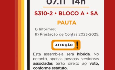 Assembleia Extraordinária do SinTUFABC O SinTUFABC convoca todas as pessoas TAE para a próxima Assembleia Extraordinária. 🗓️ 27/11 ⏰ 14h…