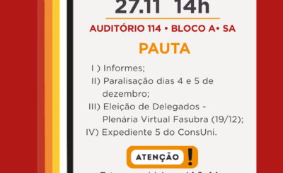 Pela primeira vez e com muita alegria anunciamos esta parceria de uma Plenária Conjunta entre SINTUNIFESP e SINTUFABC para debatermos…