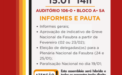 Prezada categoria Técnico-Administrativa em Educação (TAE) da UFABC, A FASUBRA-Sindical, nossa federação, publicou o Informe de Direção ID 002/2026 (anexo),…