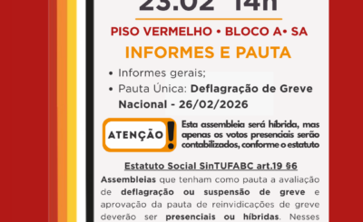 A Coordenação Geral do Sindicato dos Trabalhadores das Universidades Federais de Ensino Superior do ABC – SinTUFABC vem, por meio…